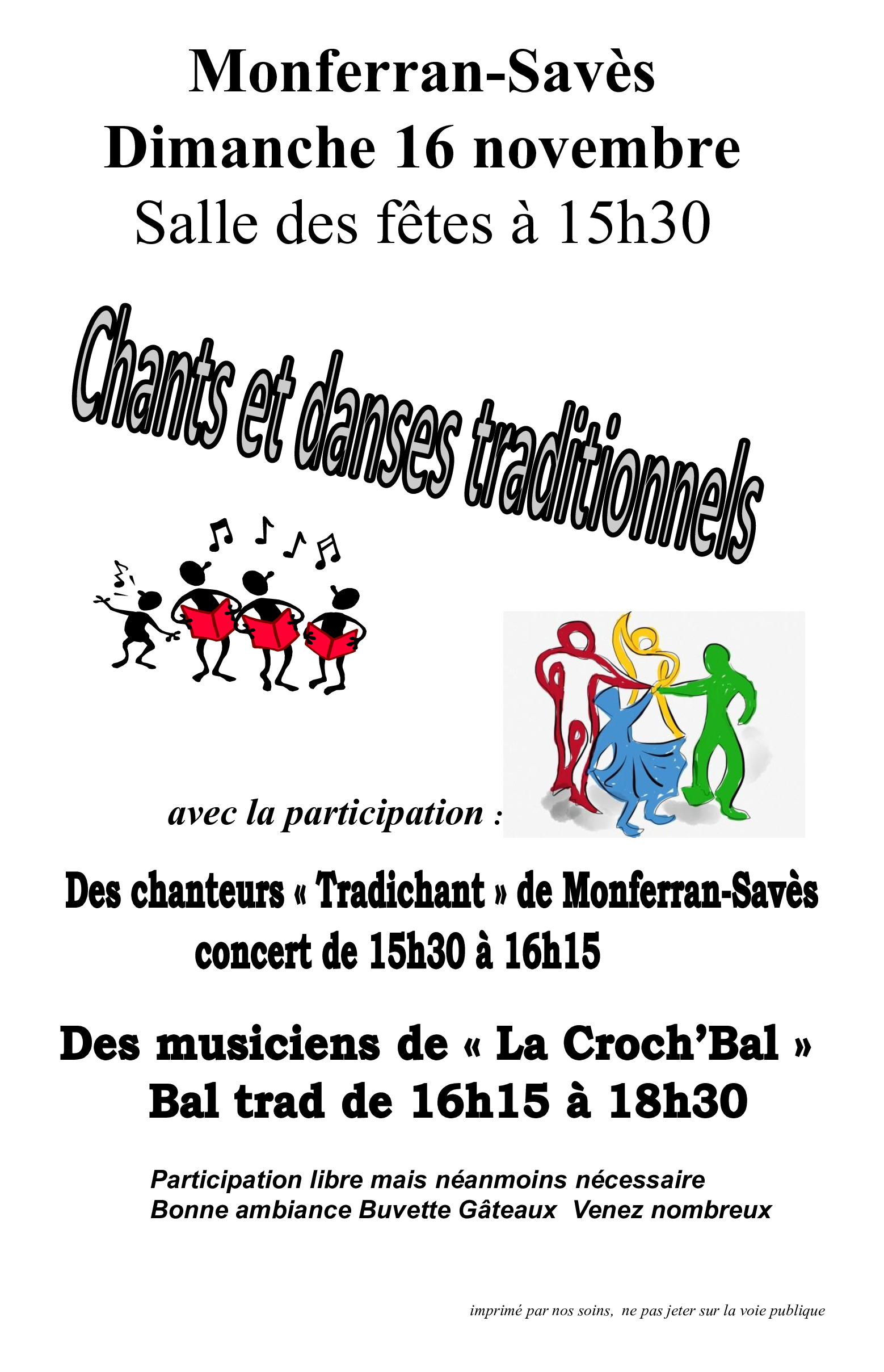 Concert des chanteurs « Tradichant » de Monferran-Savès de 15h30 à 16h15.