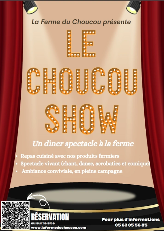 Le Choucou Show, dîner-champêtres et spectacles organisé à la Ferme du Choucou plusieurs fois par mois. Des artistes sur scènes tel que Valhème, des chanteurs/chanteuses, des danseuses mais aussi des acrobates vous surprendront toute la soirée !