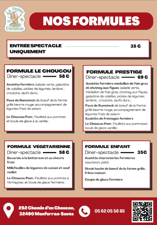 Formule Le Choucou (entrée/plat/dessert + spectacle) : 58€