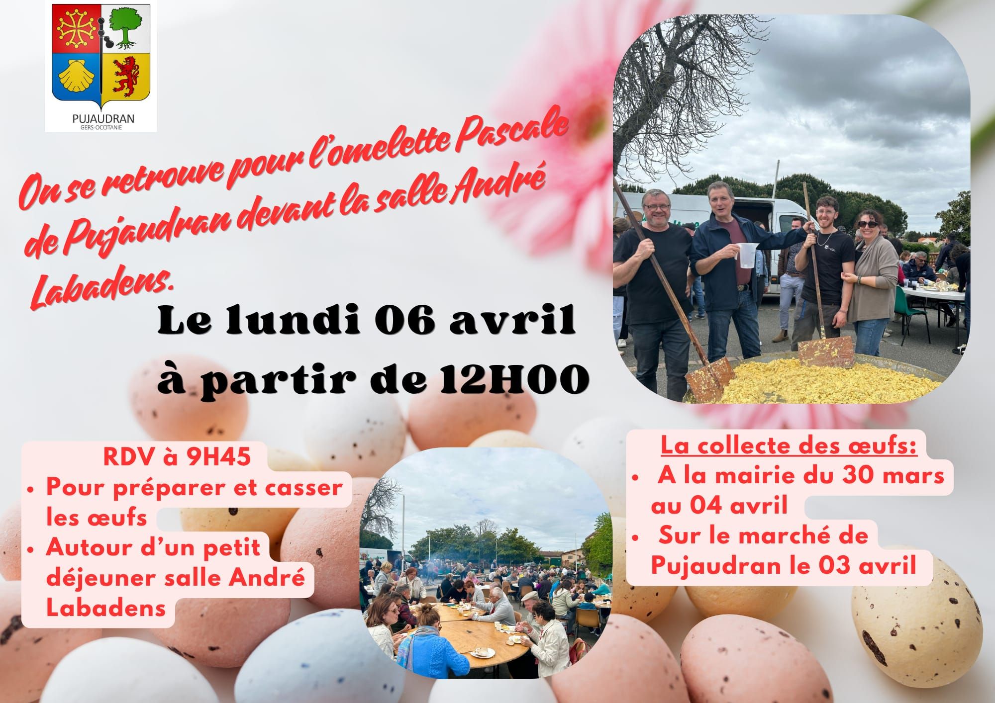 La mairie de Pujaudran vous invite à partager un moment convivial autour de notre traditionnelle omelette pascale.