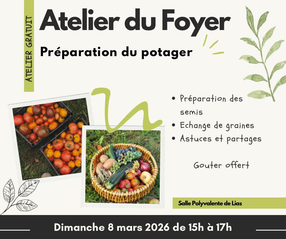Le 8 mars, le foyer de Lias organise un échange de graines. Partagez vos semences, vos conseils et préparez votre potager dans un esprit convivial.