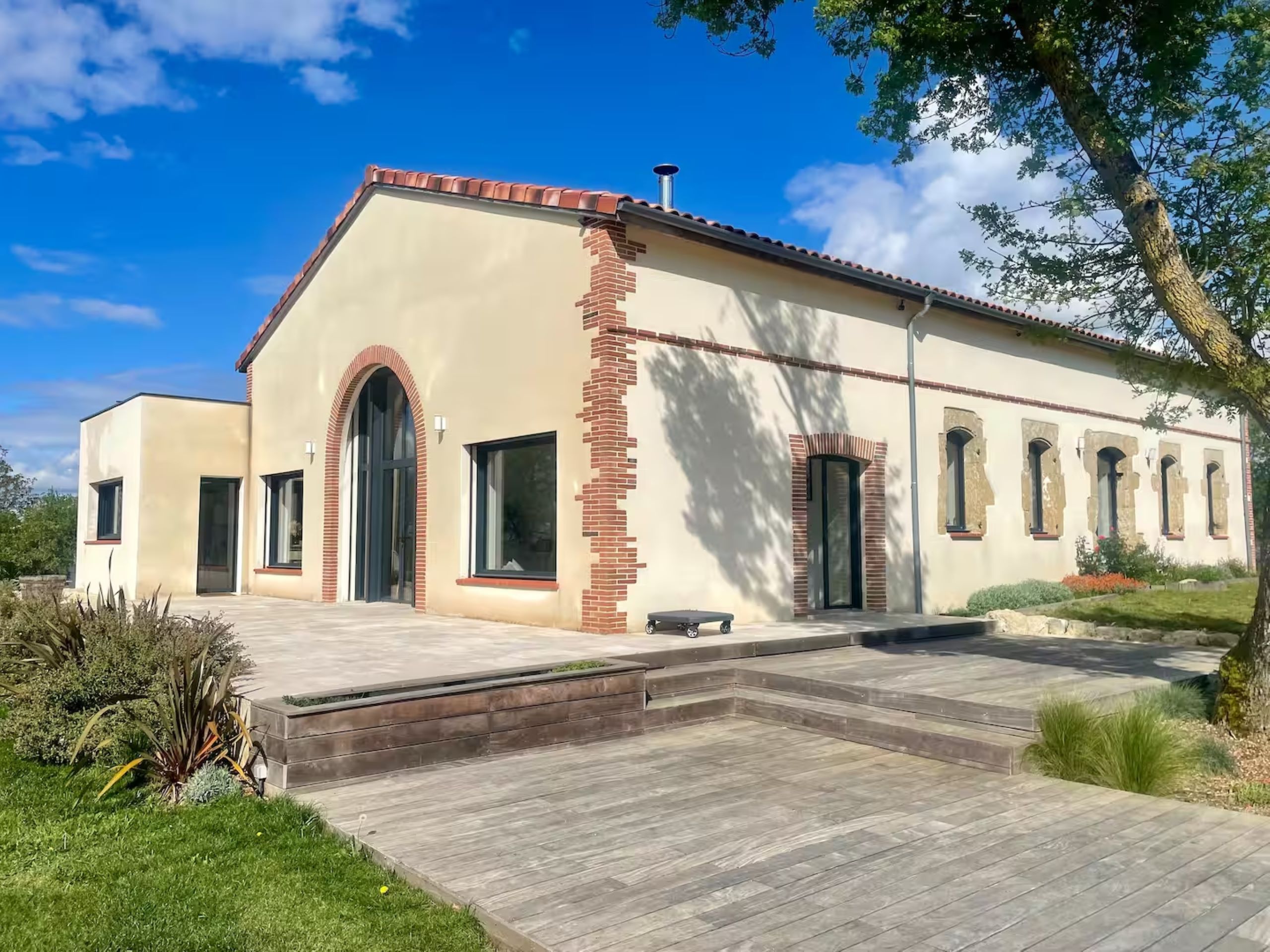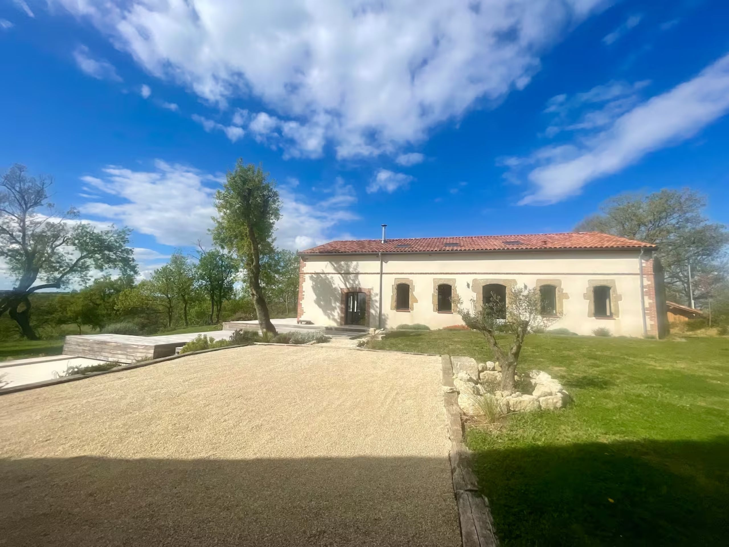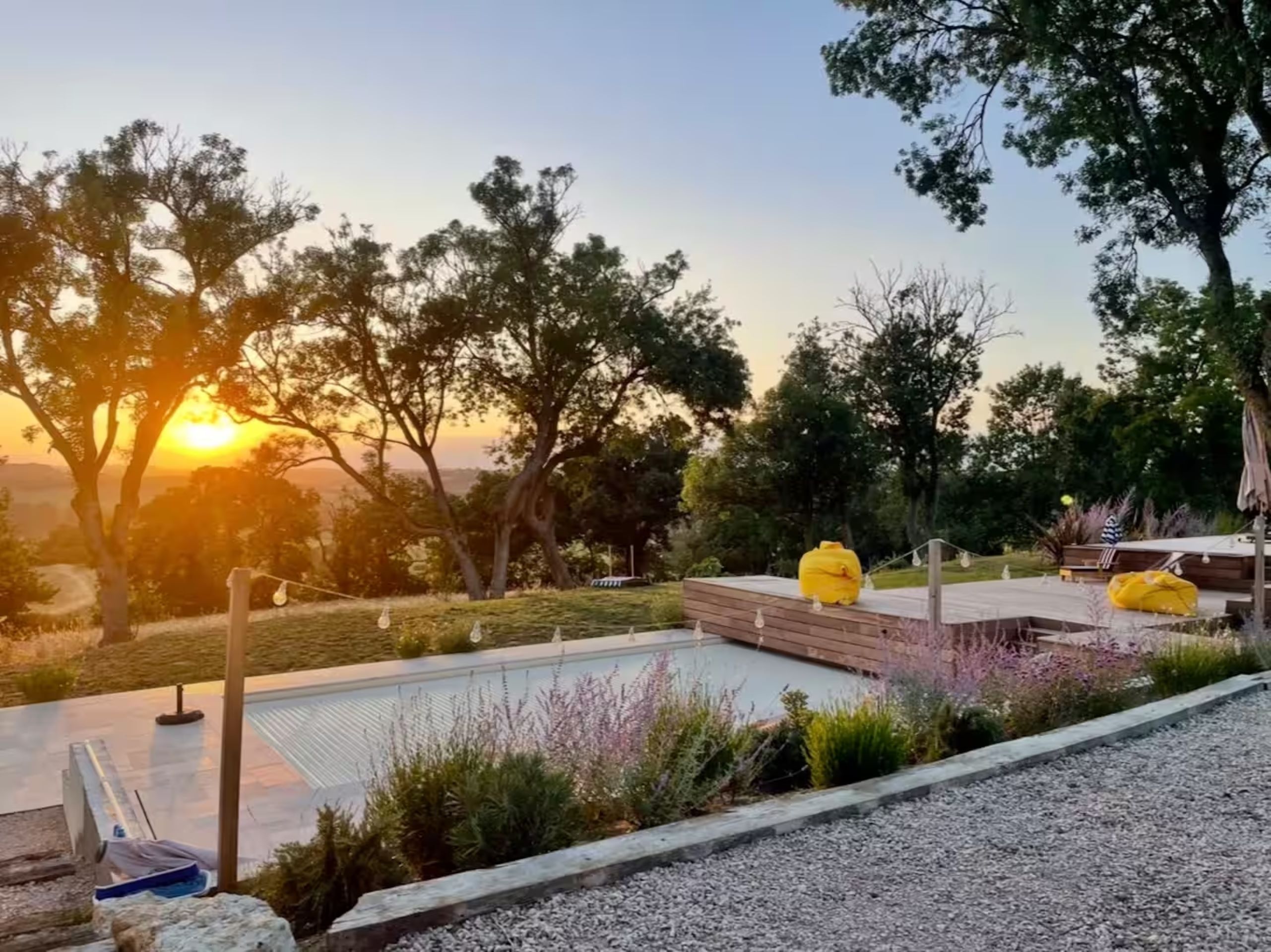 À l’extérieur, les 4000 m² de terrain sont un véritable terrain de jeu : piscine sécurisée, terrain de pétanque, balançoire et toboggan pour les enfants, sans oublier les terrasses aménagées pour savourer un barbecue ou un coucher de soleil spectaculaire.