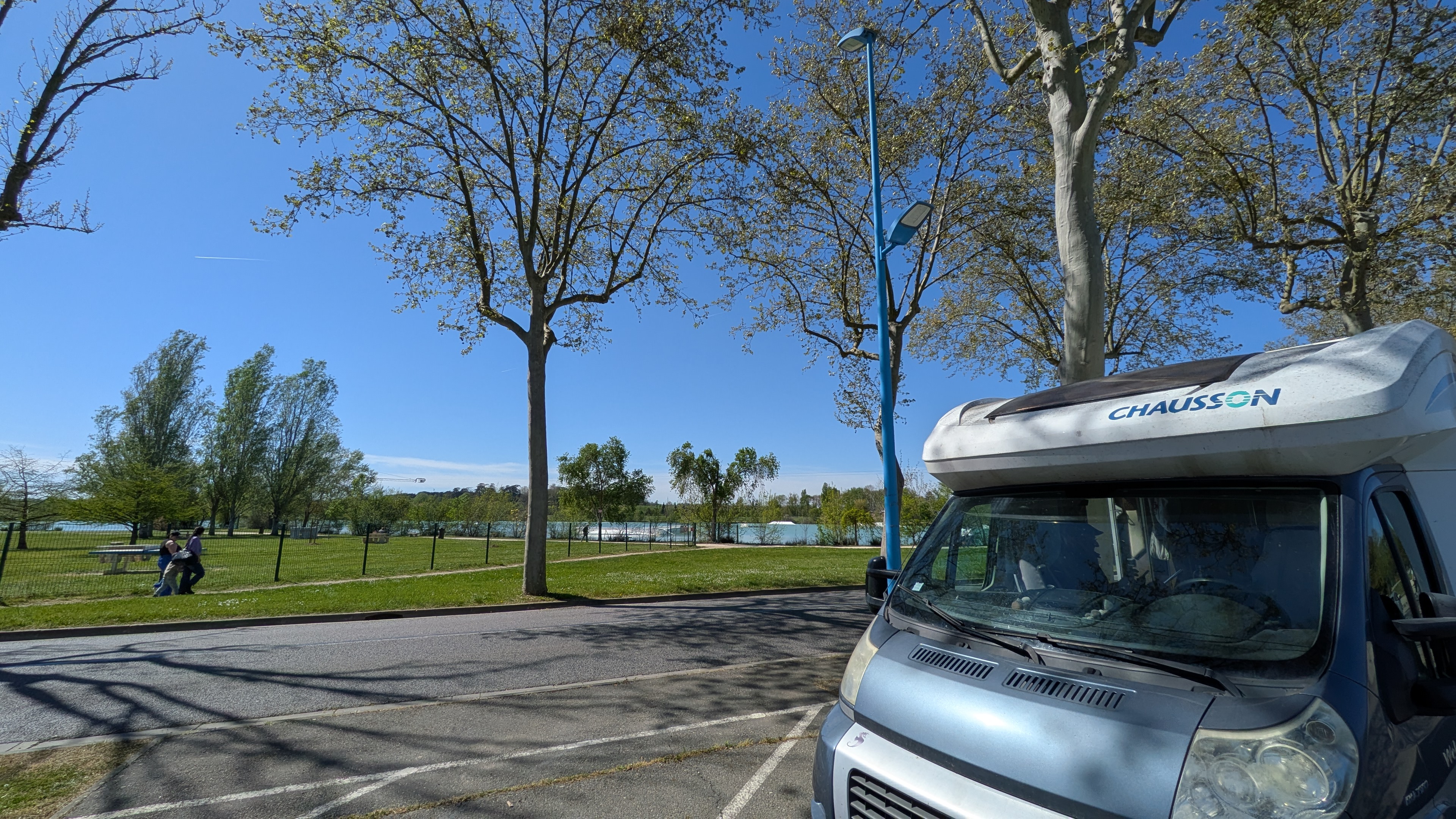 Elle permet de profiter pleinement des paysages environnants tout en étant à proximité immédiate du téléski nautique, idéal pour les amateurs de sensations et d’activités de plein air. Plusieurs lieux de restauration sont accessibles à pied, et des toilettes sont disponibles sur la base de loisirs. Une aire de vidange se trouve à environ 500 mètres, facilitant les séjours de courte durée. Cette aire est gratuite, ce qui en fait une option attractive, Cependant, elle se situe à proximité d’une route fréquentée, impliquant un certain passage. À noter qu’elle ne dispose ni d’eau ni d’électricité.