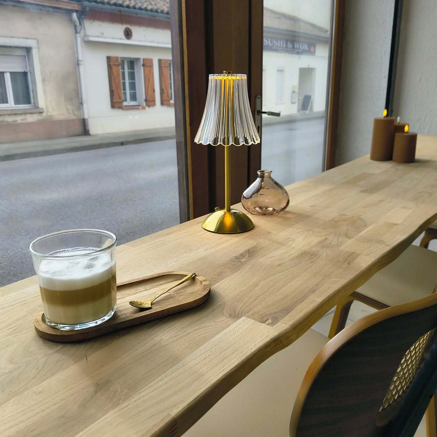 Notre espace café propose : un café de spécialité, torréfié à l’Isle Jourdain, les limonades et sirops sont fabriqués en France, de manière traditionnelle, le kombucha, également gersois, est produit à Cologne, les jus sont fraîchement préparés sur place.