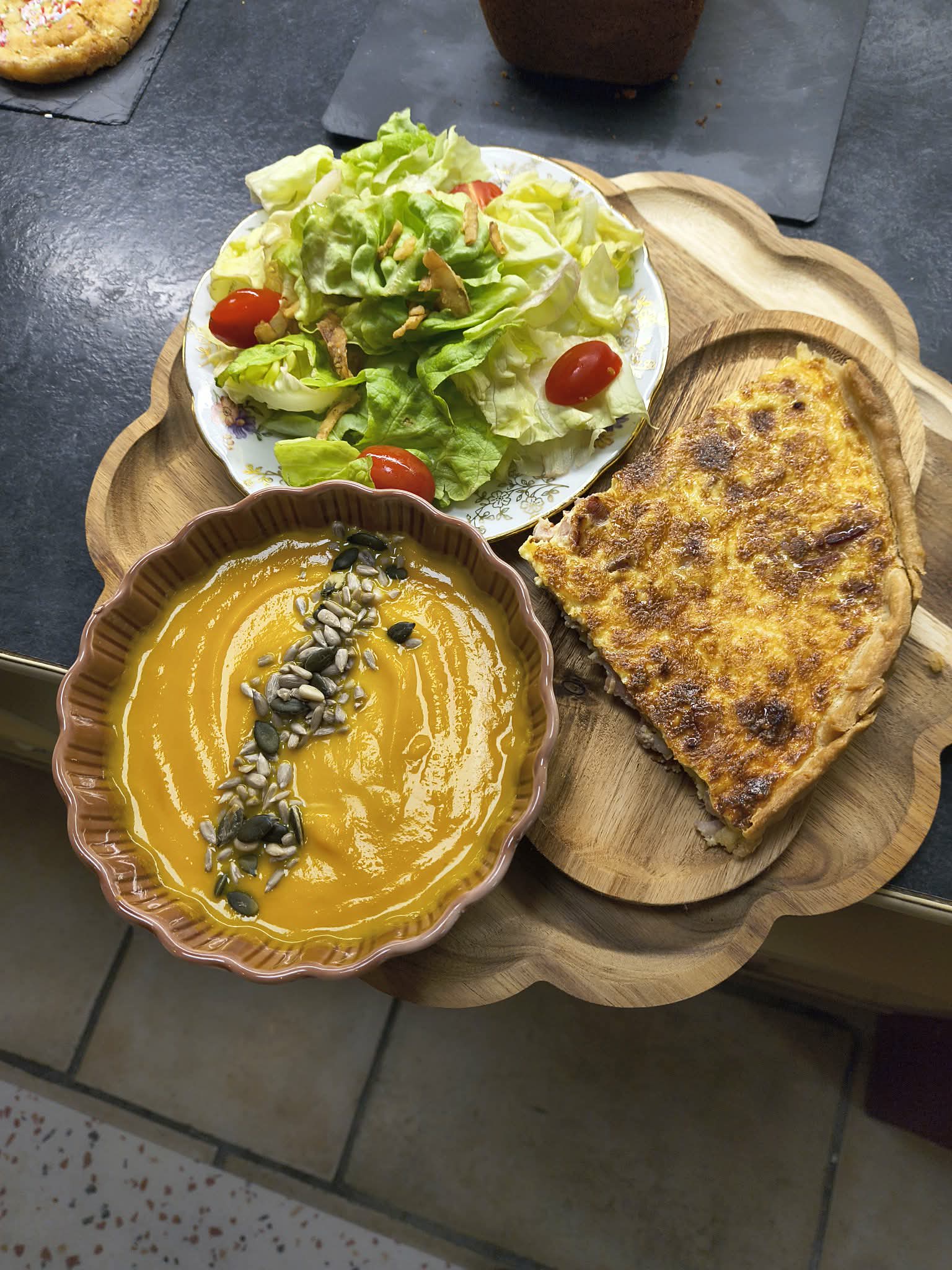Le midi, nous proposons des plats simples et savoureux, faits maison ! Nous avons à cœur d’élaborer une carte qui évolue au fil des saisons, avec le plus possible de produits bio.